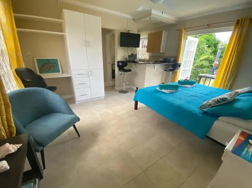More information about Surfer's LodgeComfortable Living: Cozy, quiet 1 bedroom 2A near Beach near US Embassy in Bridgetown offers a comfortable apartment with one bedroom and one bathroom. The living room features a sofa and a dining area, providing a relaxing space for guests. Modern Amenities: Guests enjoy free WiFi, air-conditioning, and a terrace.